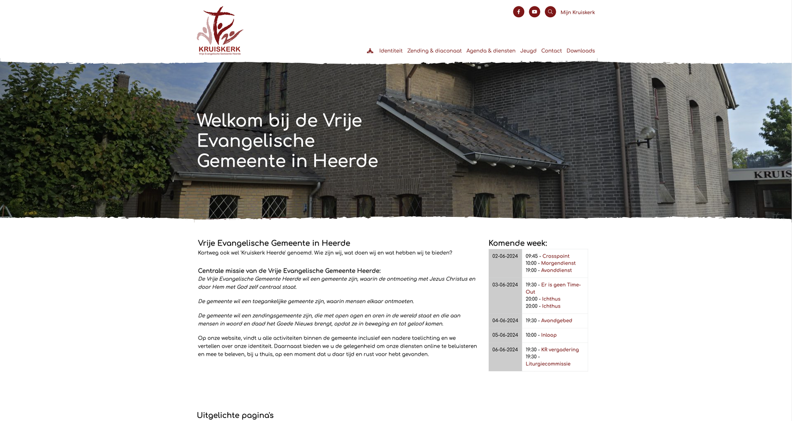 De website is gemaakt in Kerkspot met een eigen thema. Kerkspot was voor mij ook nieuw en er is niet veel documentatie over te vinden. Uiteindelijk heb ik de functies werkend gekregen die ze op de website getoond wilde hebben.