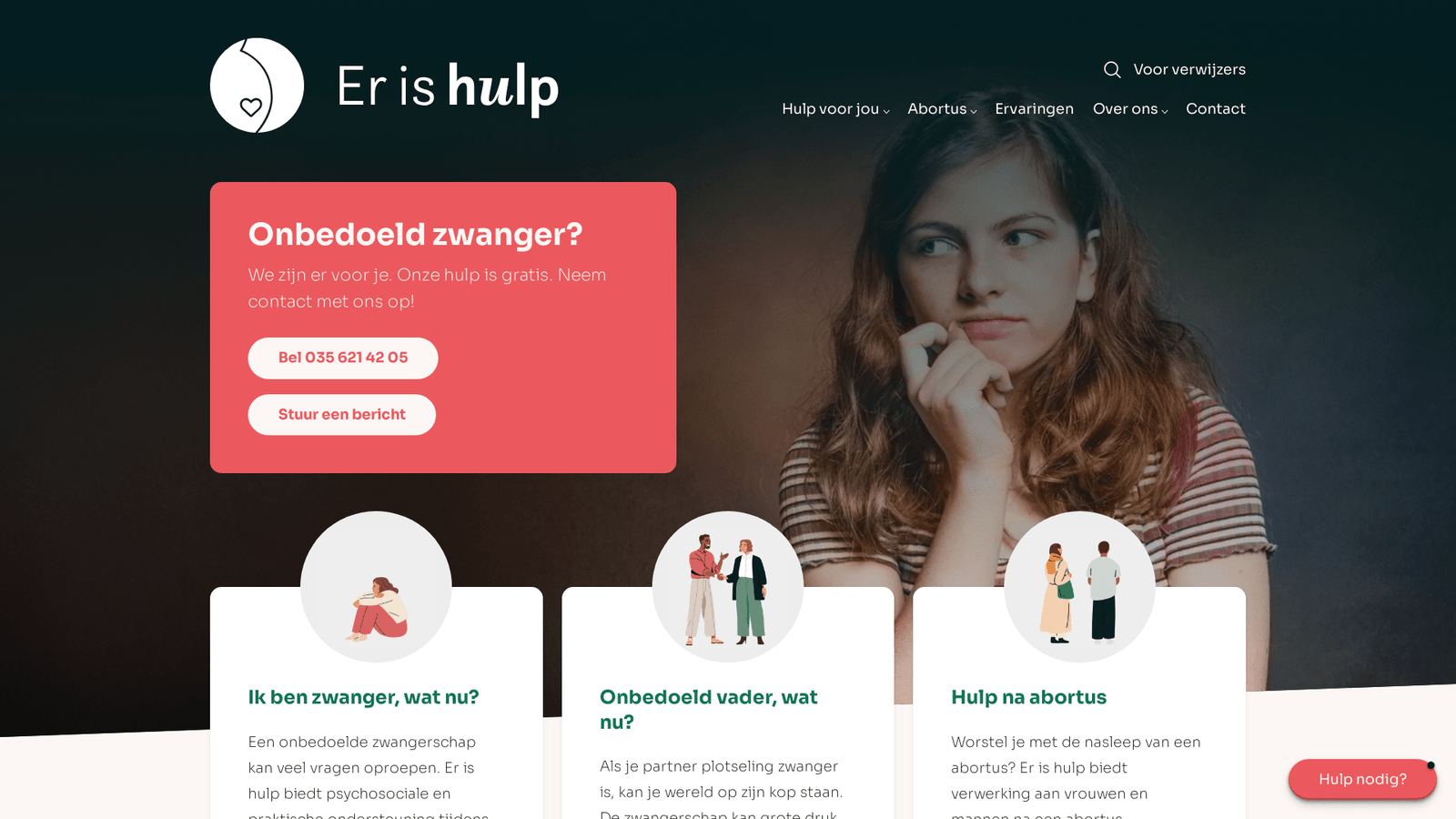 De website is gemaakt in WordPress met een eigen thema van Hayona die op maat gemaakt is voor Er is hulp. Dit zorgt ervoor dat de vindbaarheid in google en de site snelheid optimaal zijn.